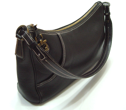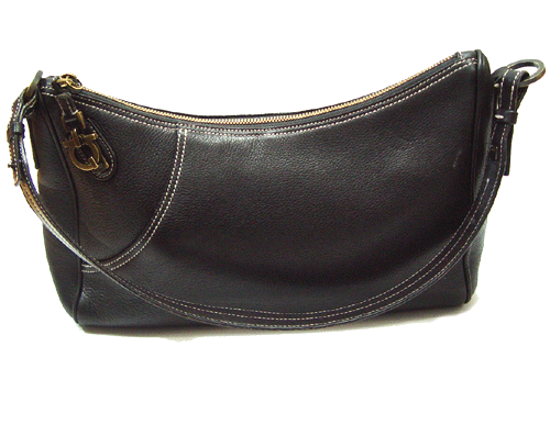 페라가모 숄더백입니다. 블랙 컬러의 가죽 소재로 스크래치가 잘 안생기는 엠보싱으로 이루어져 있습니다.