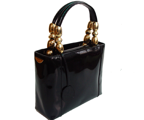 블랙컬러의 유광 소재백입니다.