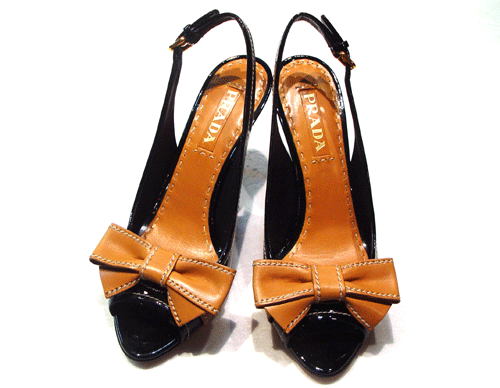 프라다 리본 유광 샌들입니다.