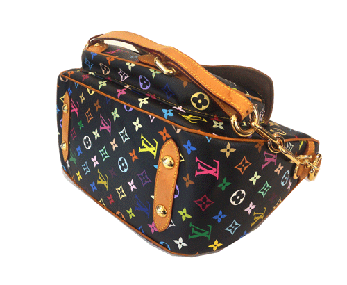 루이비통 멀티리타 루이비통 멀티 블랙백입니다. 골드 글라스 버클장식과 다양한 스터드장식으로 화려한 느낌을 주며 넉넉한 수납공간과 편리한 구조로 편하게 사용하실수 있습니다 사용으로 인한 카우하이드 때탐,물얼룩 조금씩 있으며 태닝이 진행 되었습니다