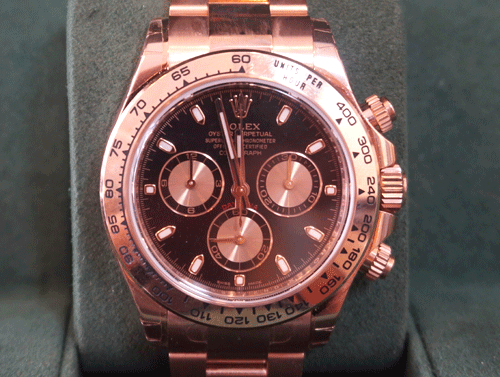 로렉스 데이토나 18K로즈골드 미사용 제품입니다. 사이즈 : 남성용( 38mm) 재질 : 18K로즈골드 무브먼트: 기계식자동(오토매틱) 부속품 : 박스, 보증서 원산지 : 스위스 (구매시기 2016년도-구매후 사용하지 않은 제품입니다)
