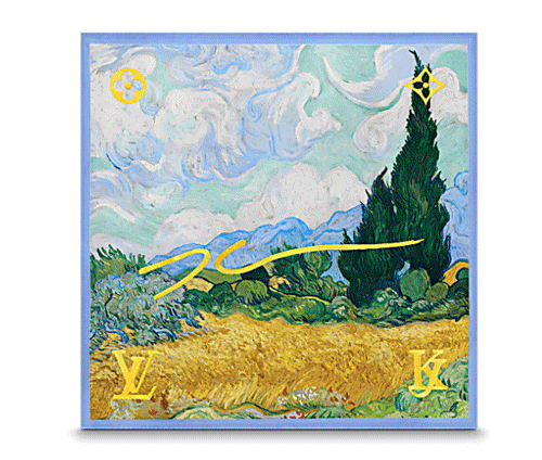 실크 트윌 소재 위에 눈부신 골드 자수 디테일로 다시 태어난 명작이 눈길을 사로잡습니다.