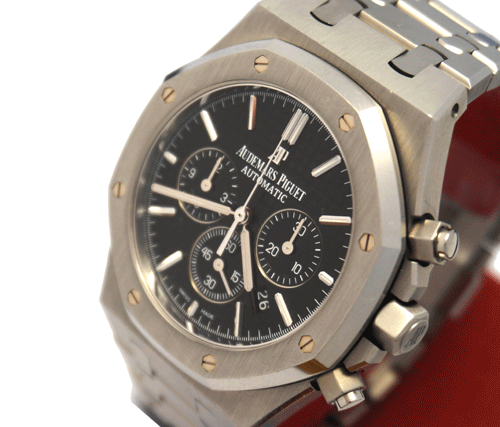 오데마 피게 로얄 오크 크로노그래프 26320ST.OO.1220.ST.01 (Audemars Piguet Royal Oak chronograph 26320ST.OO.1220.ST.01) 시리즈 : 로얄 오크 크로노그래프 소재 : 스테인레스 스틸 사이즈 : 41mm 케이스 두꺼 : 10.8mm 케이스 : 옥타곤 8각 무브먼트 : 오토매틱 칼리버 : 2385 파워리저브 : 40시간 글라스 : 사파이어 기능 : 날짜, 시간, 분, 초 크로노그래프 부속품 : 박스, 보증서 원산지 : 스위스 국내 현대 본점 구매 제품입니다.(2016년)