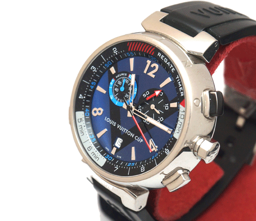 루이비통 컵 Q102D 땅부르 레가타 크르노그래프 남성용 시계입니다. (LOUIS VUITTON Tambour Regatta Q102D) 모델명 : Q102D 땅부르 레가타 사이즈 : 44mm 무브먼트 : 쿼츠(건전지) 글라스 : 사파이어 글라스 방수 : 100M 기능 : 시간, 분, 초 , 크르노그래프 소재 : 스테인레스 스틸 밴드 : 러버 스트랩 부속품 : 자체 보증서 원산지 : 스위스 구매 가격 : 643만원