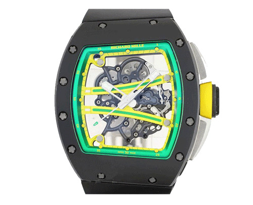 RICHARD MILLE RM61-01ca 모델 : rm061 사이즈 : 50.23 * 42.7mm 무브먼트 : 수동 밴드 : 러버밴드 부속품 : 박스, 보증서 (국내 백화점 구매 보증서)