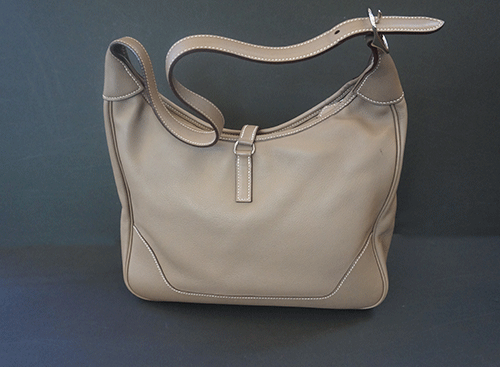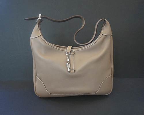 에르메스 트림듀오 숄더백입니다. 에도프 컬러이며 전체적으로 상태 좋습니다. 은장 장식, 지퍼 오픈형. 제품상태등급 : A 사이즈 : 31 * 22(30) * 8cm 부속품 : 더스트, 북렛. 원산지 : 프랑스