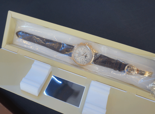 파텍필립 5270R-001 소재 : 18k 로즈골드 사이즈 : 41mm 글라스 : 사파이어 무브먼트 : 수동 퍼페 추월 칼린더, 낮/밤 표시,요일, 월, 날짜 부속품 : 박스, 보증서 원산지 : 스위스 2016년 구매후 사용하지 않은 미사용품입니다.