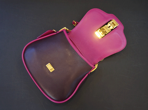 송아지 가죽 소재, 금장 장식.