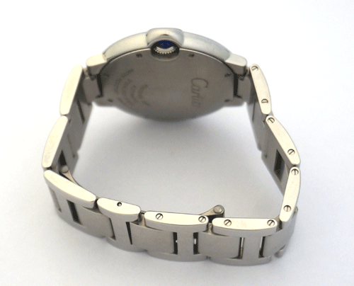 폴리시드 또는 새틴 마감된 링크 브레이슬릿이 돋보이는 발롱 블루 드 까르띠에 시계는 까르띠에 시계 컬렉션에 당당히 자리잡았습니다